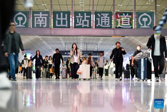 BEIJING, 7 octubre, 2025 (Xinhua) -- Pasajeros son vistos en la Estación del Ferrocarril de Harbin, en Harbin, en la provincia de Heilongjiang, en el noreste de China, el 7 de octubre de 2025. A medida que las vacaciones del Día Nacional y el Festival de Medio Oto?o llegan a su fin, los flujos de viajes de regreso aumentan en todo el país. (Xinhua/Zhang Tao)