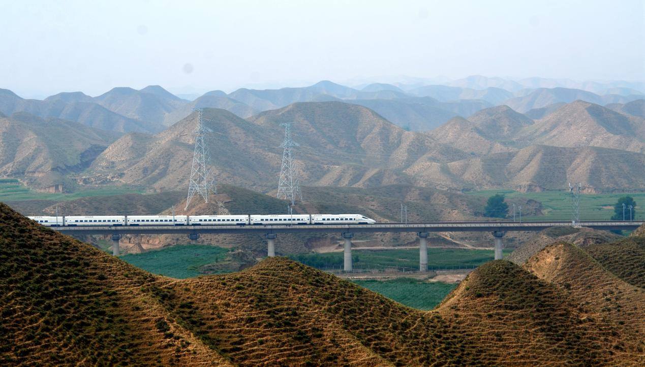 | Un tren bala atraviesa el vasto paisaje del Gobi en el municipio de Zhongchuan, Nueva área de Lanzhou, provincia de Gansu, noroeste de China, el 3 de agosto de 2025. (Foto/Xu Gang) |