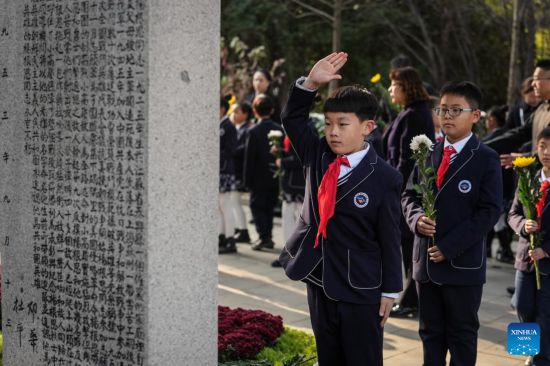SHENYANG, 25 octubre, 2025 (Xinhua) -- Estudiantes rinden homenaje a los mártires de los Voluntarios del Pueblo Chino (VPCh) en el cementerio de los mártires de los VPCh, en Shenyang, en la provincia de Liaoning, en el noreste de China, el 25 de octubre de 2025. La provincia de Liaoning realizó el sábado ceremonias de presentación de cestas de flores en Shenyang y Dandong para conmemorar el 75o aniversario del ingreso a la República Popular Democrática de Corea de los VPCh para luchar en la Guerra de Resistencia contra la Agresión de Estados Unidos y de Ayuda a Corea. (Xinhua/Pan Yulong)