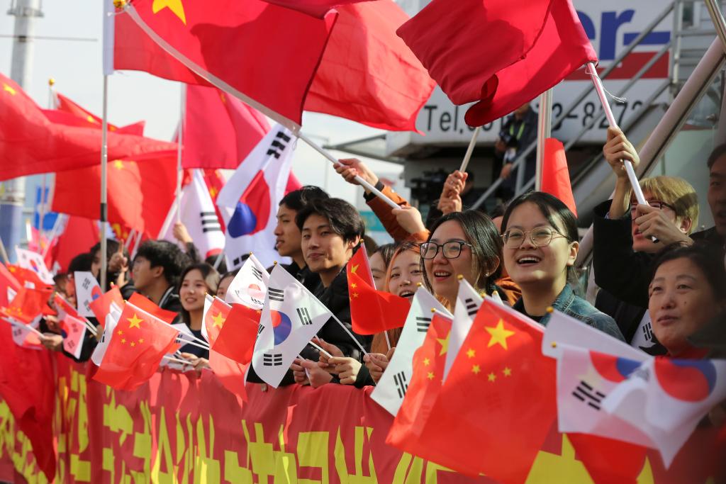 A su llegada al Aeropuerto Internacional de Gimhae en Busan, Xi fue recibido calurosamente por altos funcionarios surcoreanos, entre ellos el ministro de Relaciones Exteriores, Cho Hyun.